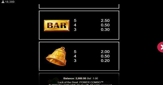 The betting range for Luck of the Devil: POWER COMBO spans from a minimum of 0,2 to a maximum of 20, allowing for both low-stakes and high-stakes play.