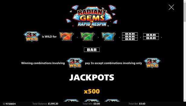 Overall, Radiant Gems Rapid Respin combines stunning visuals with engaging gameplay, making it a popular choice for players looking to play on money and enjoy an immersive gaming experience. Whether you're a seasoned player or new to online slots, this game offers the perfect blend of excitement and potential rewards.