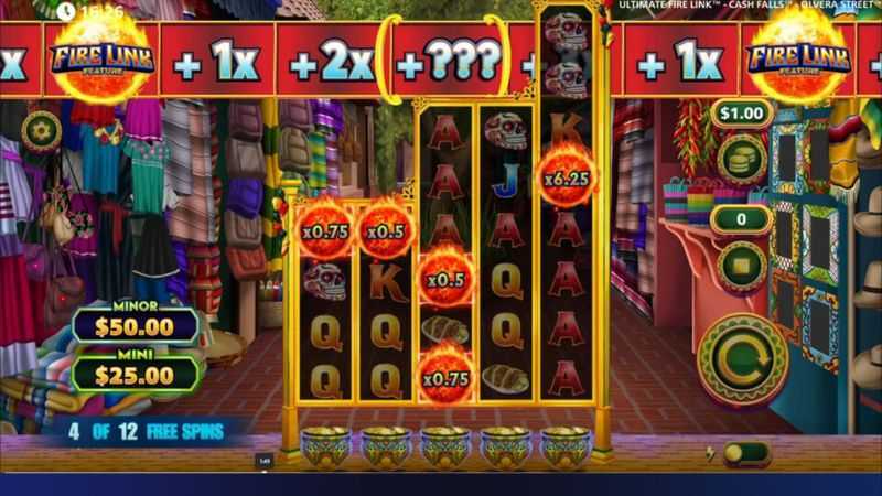 Ultimate Fire Link Cash Falls Olvera Street offers Medium volatility, providing balanced gameplay with moderate-sized wins.